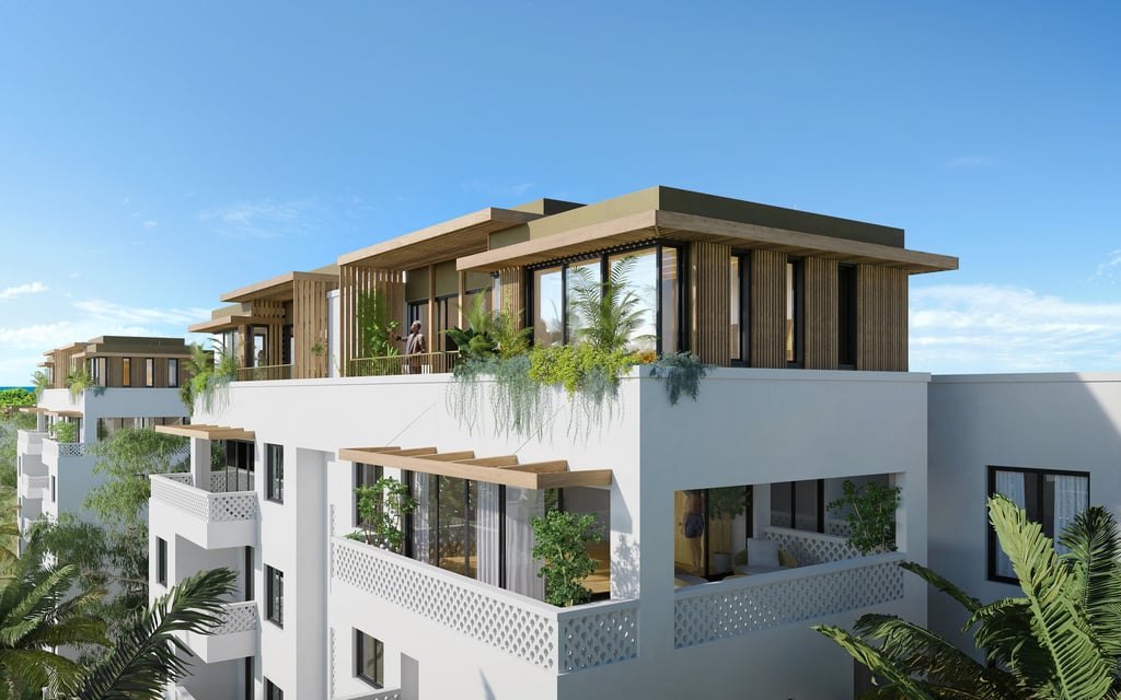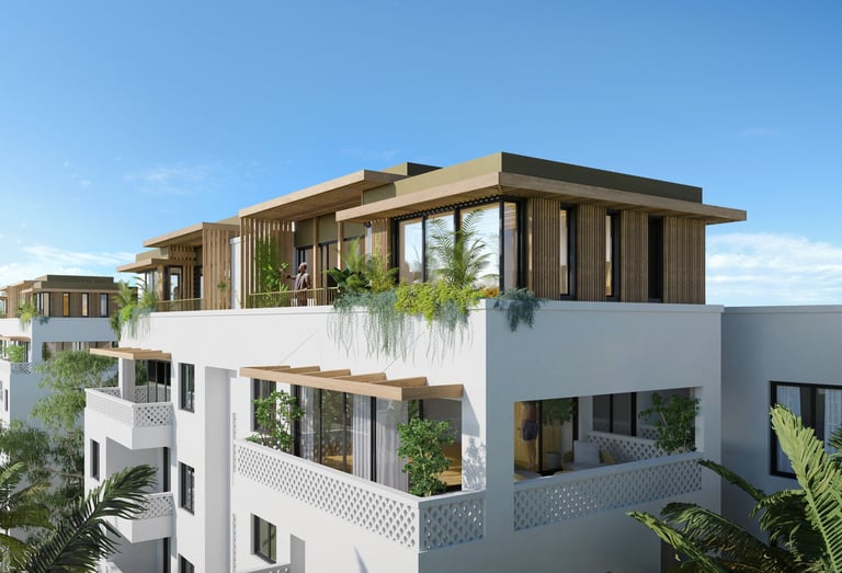Die Mwangani Skylofts liegen eingebettet in üppige Gärten und Parks und verbinden tropische Natur mit entspanntem Küstenleben. Genießen Sie weite Ausblicke über die Baumkronen bis zum Indischen Ozean und erleben Sie stilvolles Wohnen im Herzen von Fumba Town.