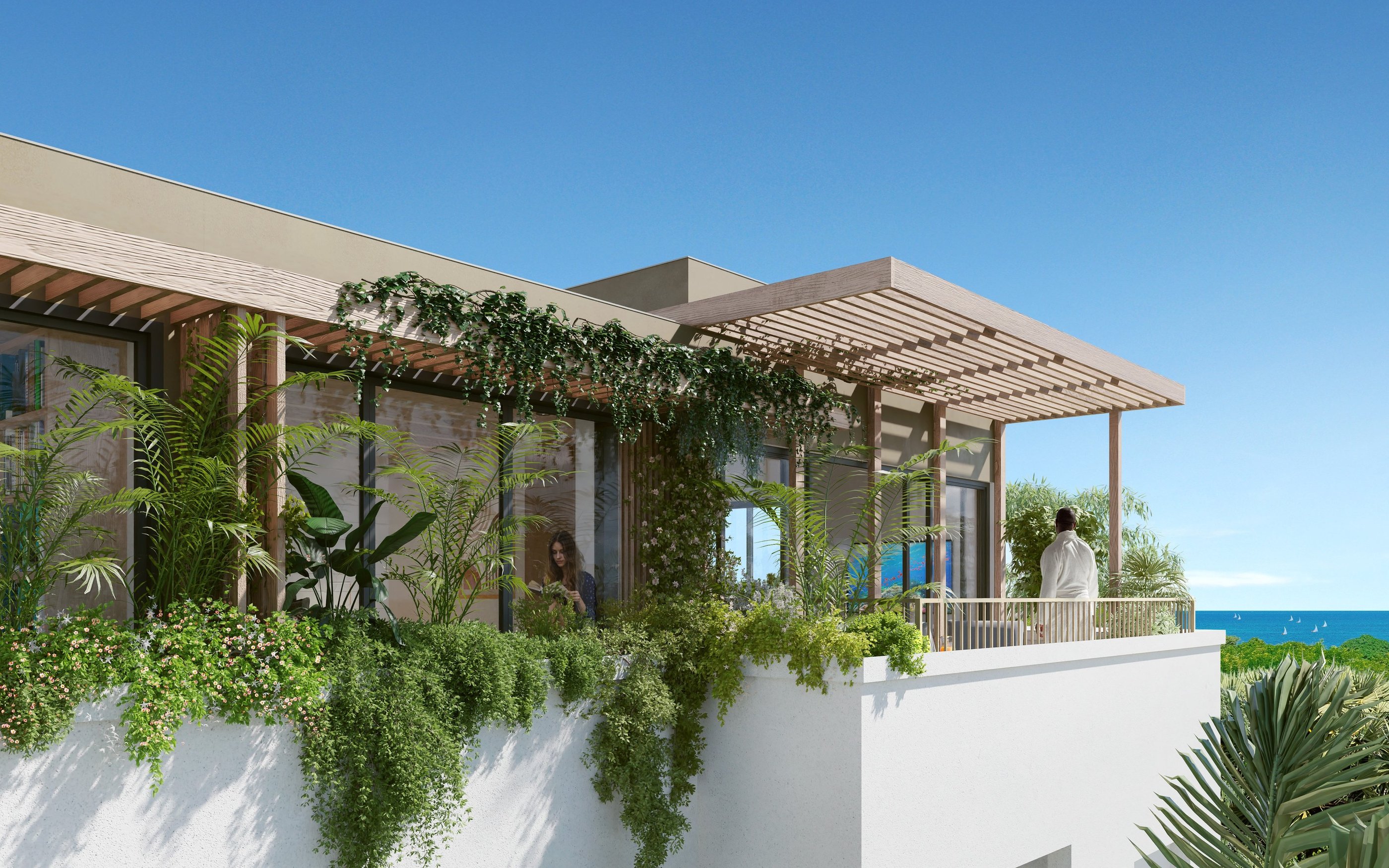 Sie erwartet eine luxuriöse 1-Schlafzimmer-Wohnung mit großzügiger Terrasse und privatem Außenbereich. Große Fenster und Dachfenster sorgen für lichtdurchflutete Räume und ein exklusives Wohngefühl mit Panoramablick.