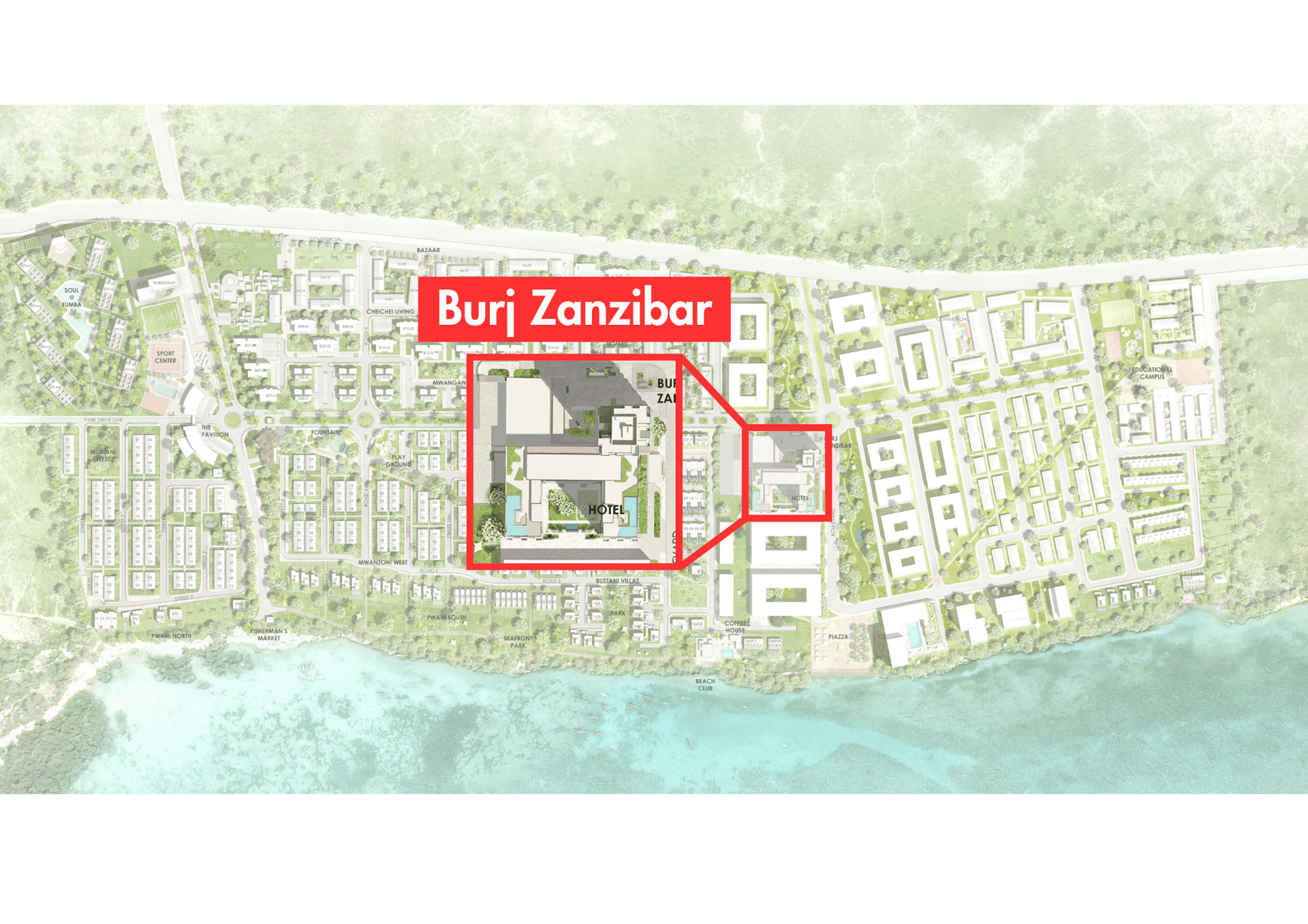 Der Burj Zanzibar wird einen atemberaubenden Ausblick bieten, der seinesgleichen sucht. Ob auf den Indischen Ozean oder die grüne Landschaft – jede Perspektive wird zum Träumen einladen. Mit seiner Lage im Herzen von Fumba Town werden Sie zudem nur einen Steinwurf entfernt sein von erstklassigen Restaurants, Boutiquen und kulturellen Highlights.